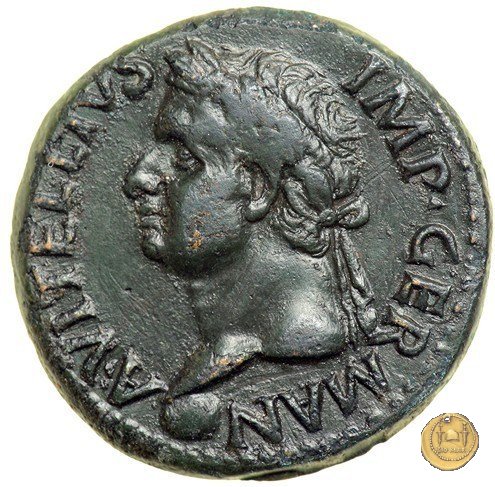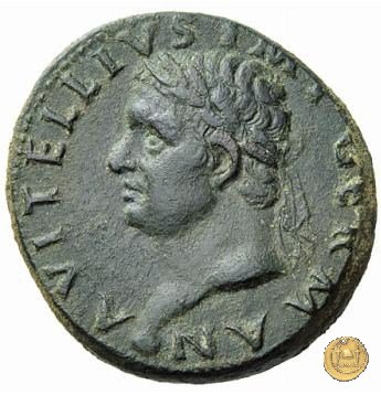 Testa di Vitellio, laureata, rivolta a sinistra. Globo all'apice del busto.