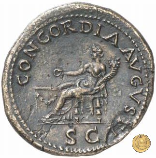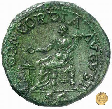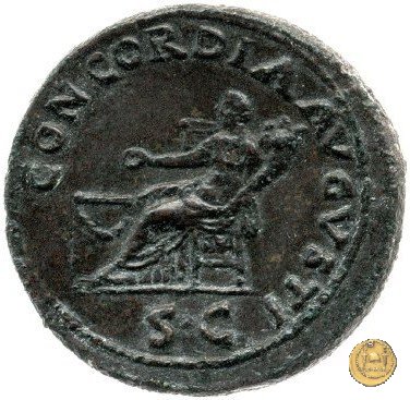 La Concordia, drappeggiata e seduta verso sinistra, con in mano una patera e una cornucopia; di fronte un altare.