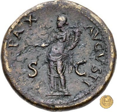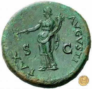 La Pax, drappeggiata, in piedi, rivolta verso sinistra che tiene un ramo e una cornucopia.