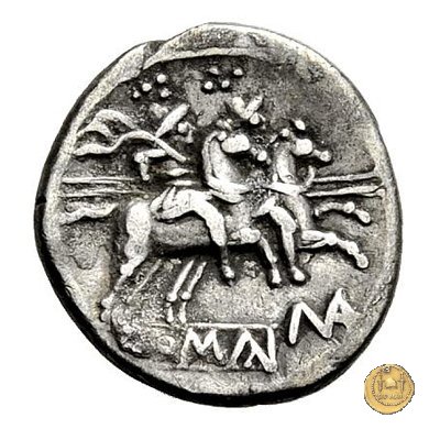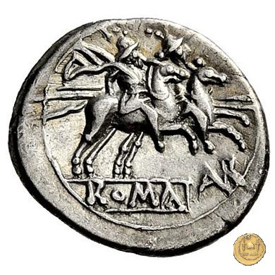 64/1 - MA Obverse: Testa di Roma a destra, con elmo attico alato. Dietro: V Reverse: ROMA I Dioscuri a cavallo verso destra, con lancia in resta; due stelle sopra i loro pilei. Sotto: MA | |