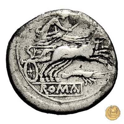 156/2 - Roma / Luna - gambero (prawn) Obverse: Testa di Roma a destra, con elmo attico alato. Dietro: V Reverse: ROMA La Luna su biga verso destra; tiene le redini con la mano sinistra, la frusta con la destra. Sotto un gambero. | |