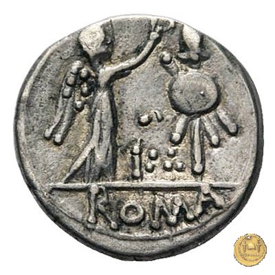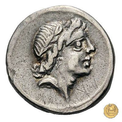 373/1 - Apollo / Vittoria Obverse: Testa laureata di Apollo a destra. Reverse: ROMA La Vittoria stante a destra, incorona un trofeo d'armi. Al centro una lettera o un numero o un segno frazionale di controllo. |