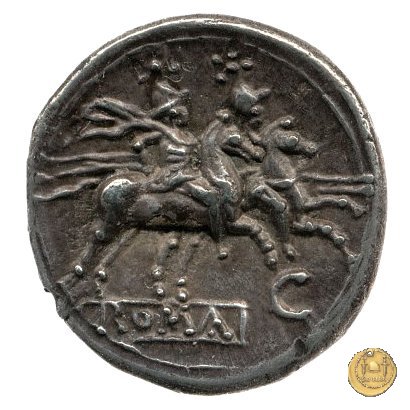 63/1 - C Obverse: Testa di Roma a destra, con elmo attico alato. Dietro: V Reverse: ROMA I Dioscuri a cavallo verso destra, con lancia in resta; due stelle sopra i loro pilei. Sotto: C | |