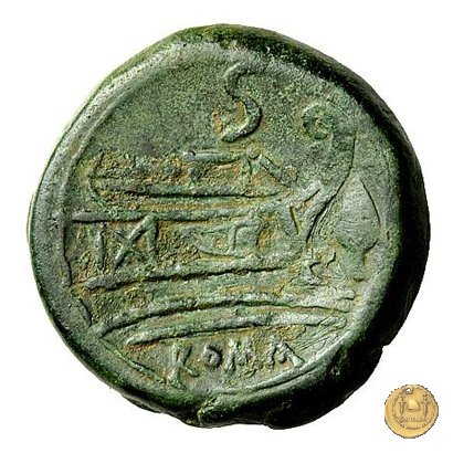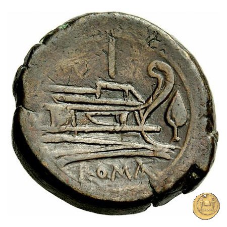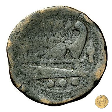 Verso: Prora di nave a destra. In alto: ROMA ; davanti una punta di lancia; in basso tre globetti.