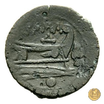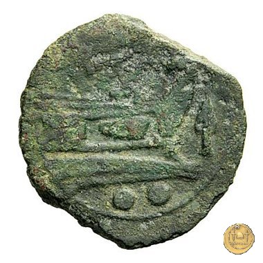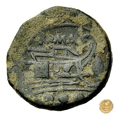 Verso: Prora di nave a destra. In alto: ROMA ; davanti una punta di lancia; in basso quattro globetti.