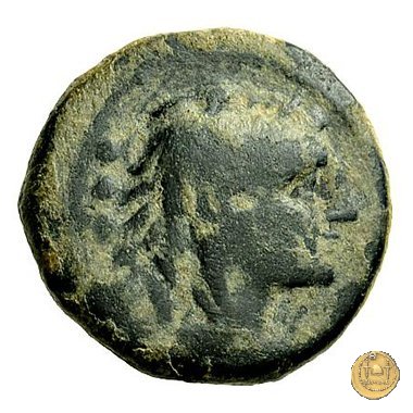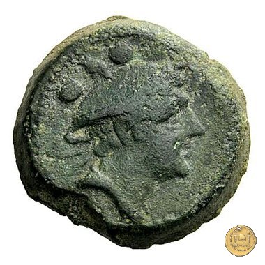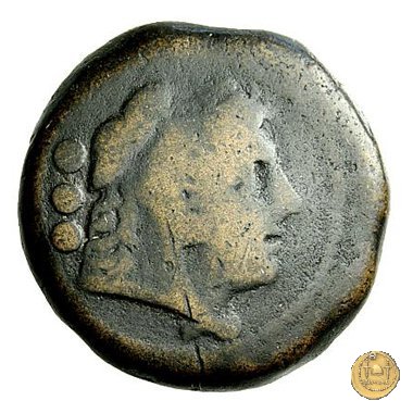 Dritto: Testa di Ercole a destra, con il capo avvolto nella pelle leonina. Dietro tre globetti.