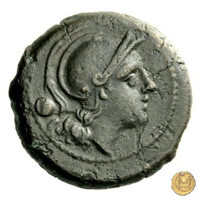 Dritto: Testa elmata di Minerva a destra. In alto quattro globetti.