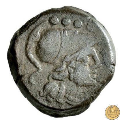Dritto: Testa elmata di Minerva a destra. In alto quattro globetti.