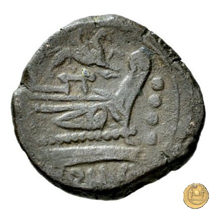Verso: Prora di nave a destra. In alto un grifone e la testa di una lepre; davanti quattro globetti; in basso: ROMA