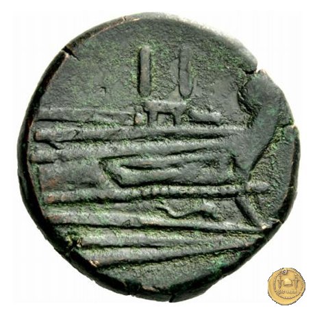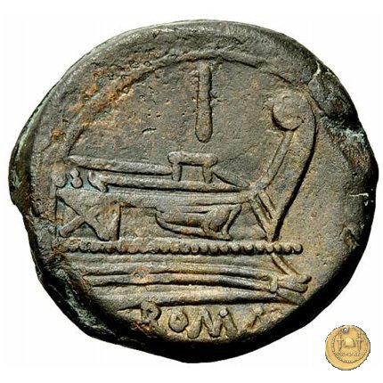 56/5 - quadrante Dritto: Testa di Ercole a destra, con il capo avvolto nella pelle leonina. Dietro tre globetti. Verso: Prora di nave a destra. In alto: ROMA ; in basso tre globetti. |