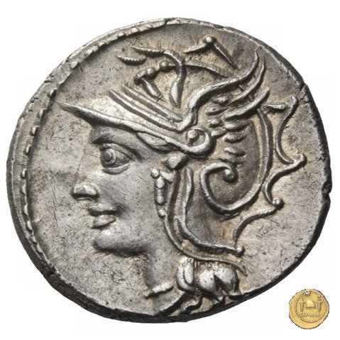317/1 - denario L. Appuleius Saturninus Dritto: Testa di Roma a sinistra, con elmo attico alato. Dietro una lettera di controllo. Verso: L. SAT Testa di Roma a sinistra, con elmo attico alato. | |
