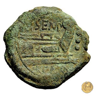 (216) - oncia L. Sempronius Pitio Dritto: Testa elmata di Roma a destra. Dietro un globetto. Verso: L. SEMP Prora di nave a destra. In alto: L. SEMP ; davanti un globetto; in basso: ROMA | |