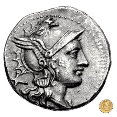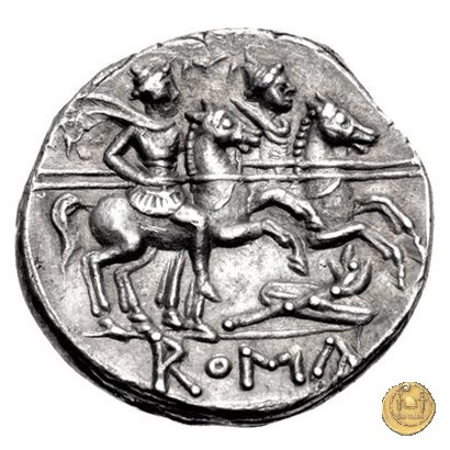 128/1 - denario Decius Obverse: Testa di Roma a destra, con elmo frigio. Dietro: ![]() ![]() Reverse: ROMA I Dioscuri a cavallo verso destra. In basso uno scudo ovale e un carnyx. |