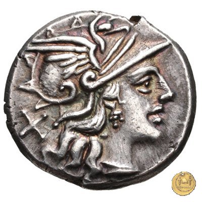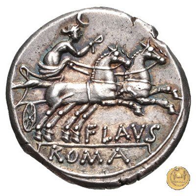 207/1 - denario C. Decimius Flavus Dritto: Testa di Roma a destra, con elmo attico alato. Dietro: ![]() ![]() Verso: FLAVS - ROMA La Luna su biga verso destra; tiene le redini con la mano sinistra, la frusta con la destra. |