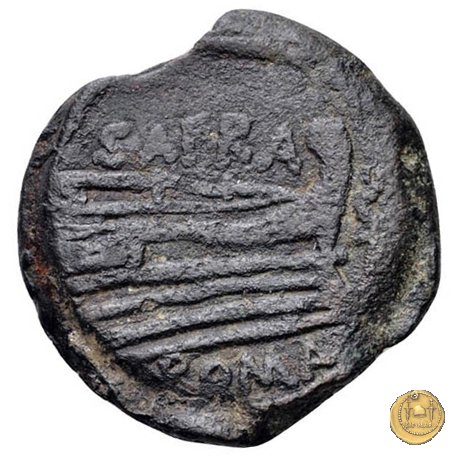 206/5 - quadrante Spurius Afranius Obverse: Testa di Ercole a destra, con il capo avvolto nella pelle leonina. Dietro tre globetti. Reverse: SAFRA Prora di nave a destra. In alto: SAFRA ; davanti un delfino; in basso: ROMA | |