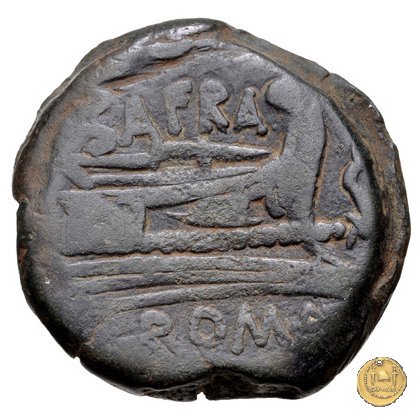 206/2 - asse Spurius Afranius Obverse: Testa laureata di Giano. In alto: I Reverse: SAFRA Prora di nave a destra. In alto: SAFRA ; davanti un delfino; in basso: ROMA | |