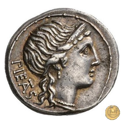 308/1 - denario M. Herennius Obverse: PIETA S Testa della Pietà a destra, con diadema. Reverse: M. HE RENNI Anphinomos (oppure Anapias) in corsa verso destra, trasporta l'anziano padre sulla spalla: entrambi volgono il capo all'indietro. | |