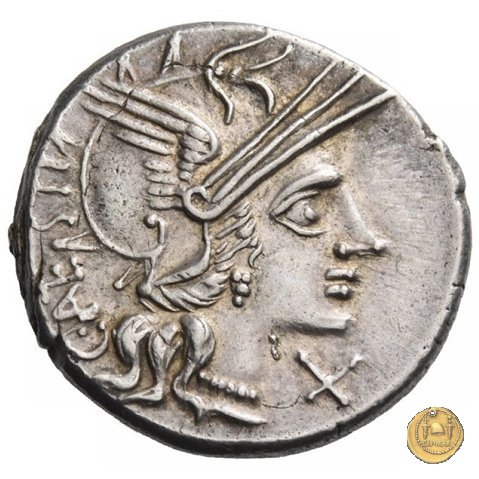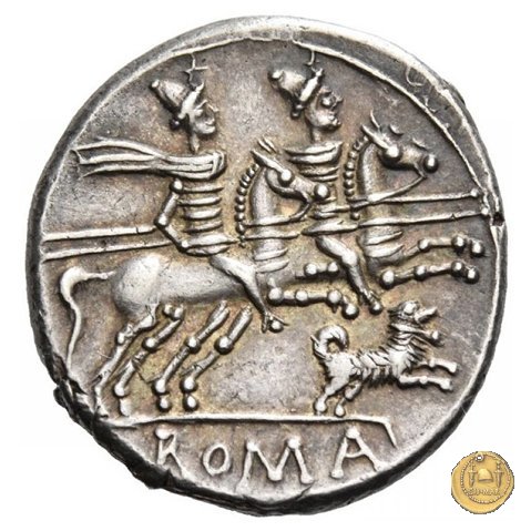 219/1 - denario C. Antestius Obverse: Testa di Roma a destra, con elmo attico alato. Dietro un cagnolino. Davanti: ![]() ![]() Reverse: C. ANTE STI - ROMA I Dioscuri a cavallo verso destra. | |