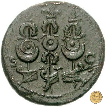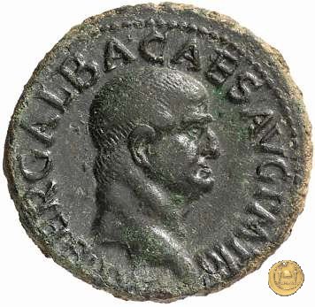 CLM509 Obverse: ↻ IMP SER GALBA - AVG TR P Busto di Galba, laureato, rivolto verso destra. Reverse: → S - C Al centro, un aquila rivolta verso sinistra su di una prora rivolta di fronte; ai lati di essa, due stendardi su due rispettive prore, una rivolta verso sinistra e l'altra verso destra. Tre ghirlande ornano i tre stendardi. |