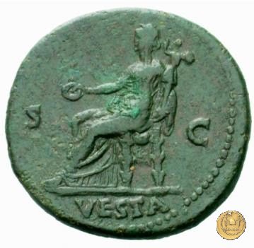 CLM605 Obverse: ↻ IMP SER GALBA CAE AVG TR P Testa di Galba rivolta verso destra. Reverse: → VESTA (esergo); S - C Vesta, drappeggiata, seduta su di una sedia dal basso schienale; nella mano destra una patera, nella sinistra un palladio. |