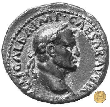 CLM540 Obverse: ↻ SER GALBA IMP CAESAR AVG TR P Busto di Galba, laureato, rivolto verso sinistra. Reverse: ![]() ![]() ![]() ![]() La Libertas, drappeggiata e rivolta verso sinistra; nella mano destra un pileo, nella sinistra, un'asta. |