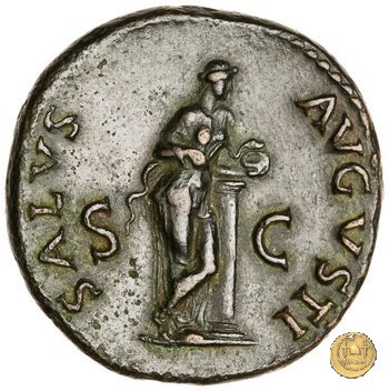 CLM563 Obverse: ↻ SER SVLPI GALBA IMP CAE - SAR AVG P M TR P Busto di Galba, laureato e drappeggiato, rivolto verso destra. Reverse: ![]() ![]() ![]() ![]() La Salus, drappeggiata, in piedi rivolta verso destra con le gambe incrociate e poggiata su di una colonna. Tra le braccia, un serpente. |