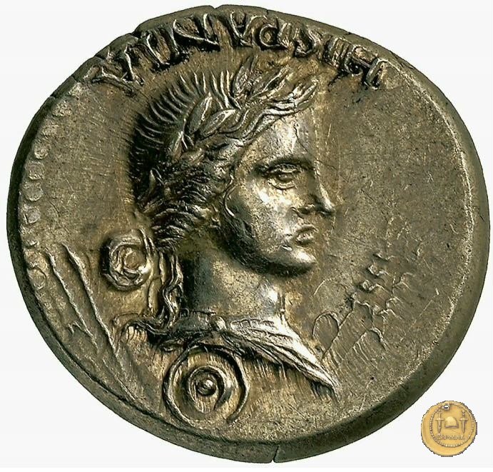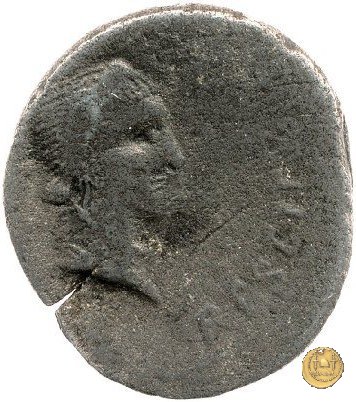 CLM104 Dritto: ![]() GALBA ![]() IMPERATORTesta di Galba, laureata, rivolta verso destra. Globo all'apice del busto. Verso: ![]() DIVA ![]() AVGVSTALivia, drappeggiata e in piedi rivolta verso sinistra. Nella mano destra una patera, nella sinistra un lungo scettro. | |