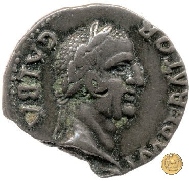 CLM77 Dritto: ![]() GALBA ![]() IMPERATORTesta di Galba, laureata, rivolta verso destra. Globo all'apice del busto. Verso: ![]() BONI ![]() EVENTVSIl Bonus Eventus, in piedi verso sinistra, con nella mano destra una patera e nella sinistra spighe di grano e papaveri. | |