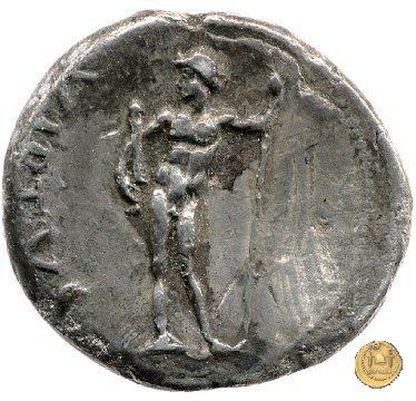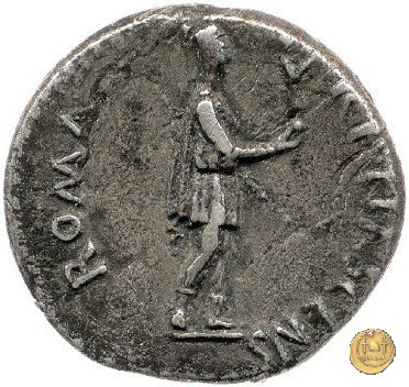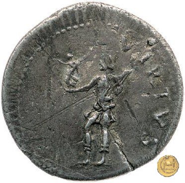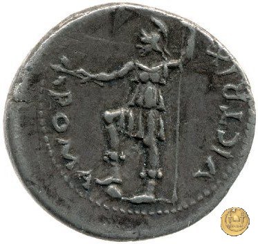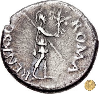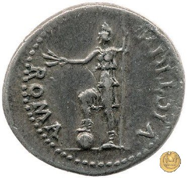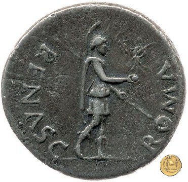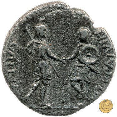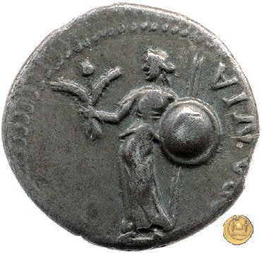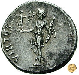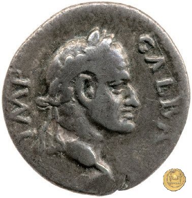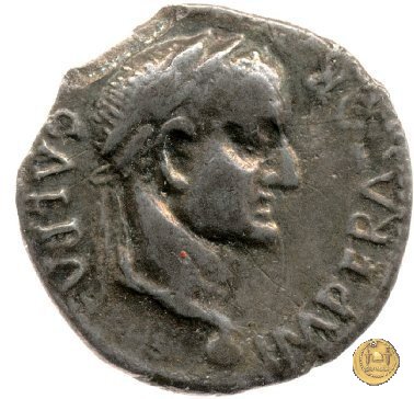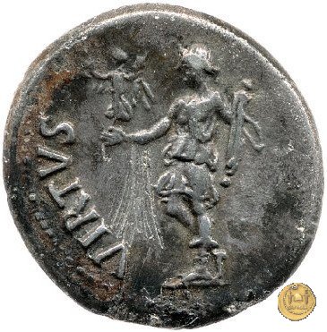 CLM81 Dritto: ![]() GALBA ![]() IMPERATORTesta di Galba, laureata, rivolta verso destra. Globo all'apice del busto. Verso: ![]() VIRTVSLa Virtus, nuda, in piedi e con la testa verso sinistra; nella mano destra un parazonium, nella sinistra una lancia in posizione verticale. | |