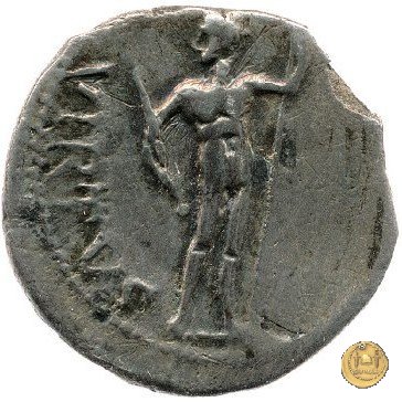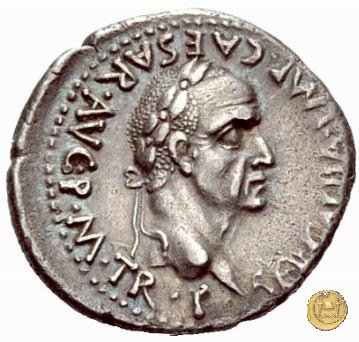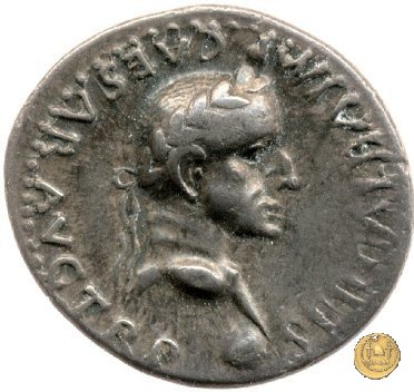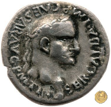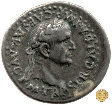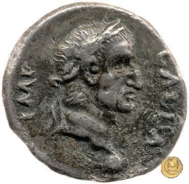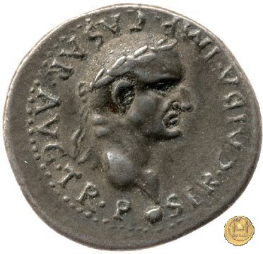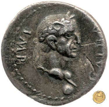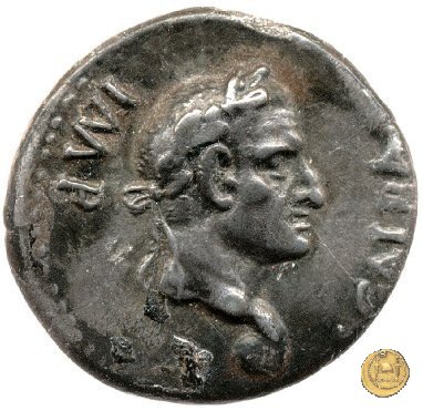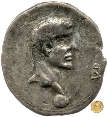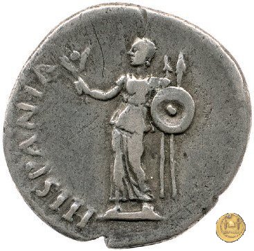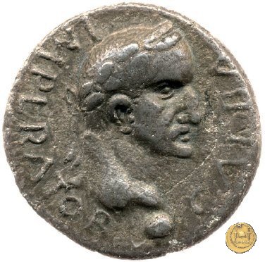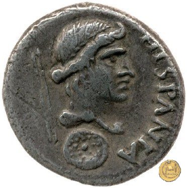 CLM88 Dritto: ![]() GALBA ![]() IMPTesta di Galba, laureata, rivolta verso destra. Globo all'apice del busto. Verso: ![]() HISPANIALa Spagna, drappeggiata, in piedi rivolta verso sinistra. Nella mano destra, spighe di grano e papaveri, nella sinistra, uno scudo con due lance. | |