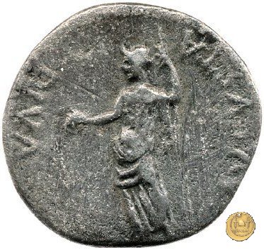 CLM109 Dritto: ![]() GALBA ![]() IMPERATORTesta di Galba, laureata, rivolta verso destra. Globo all'apice del busto. Verso: ![]() ROMA ![]() VICTRIXRoma, elmata e in abbigliamento militare, in piedi verso sinistra, con il piede destro poggiato su di un globo. Con la mano sinistra tiene una lancia, con la destra un ramo d'olivo. | |