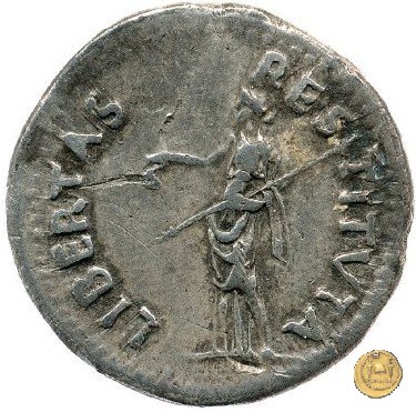 CLM78 Dritto: ![]() GALBA ![]() IMPERATORTesta di Galba, laureata, rivolta verso destra. Globo all'apice del busto. Verso: ![]() LIBERTAS ![]() RESTITVTATesta della Libertas rivolta verso destra; i capelli sono raccolti in una coda. | |