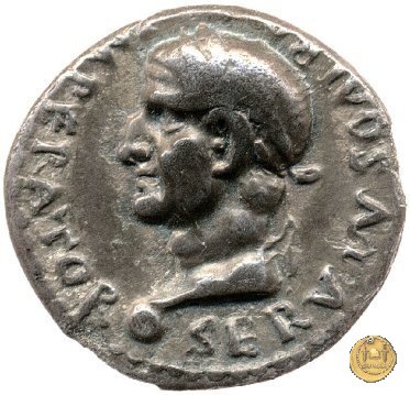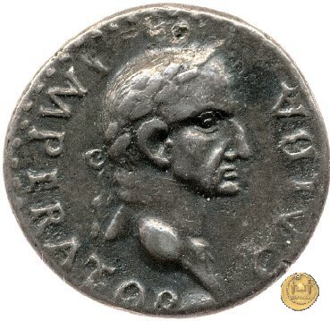 CLM111 Dritto: ![]() GALBA ![]() IMPERATORTesta di Galba, laureata, rivolta verso destra. Globo all'apice del busto. Verso: ![]() VICTORIA ![]() P - RUna Vittoria, drappeggiata e con la testa rivolta verso sinistra, su di un globo. Nella mano destra una ghirlanda e nella sinistra una palma. | |