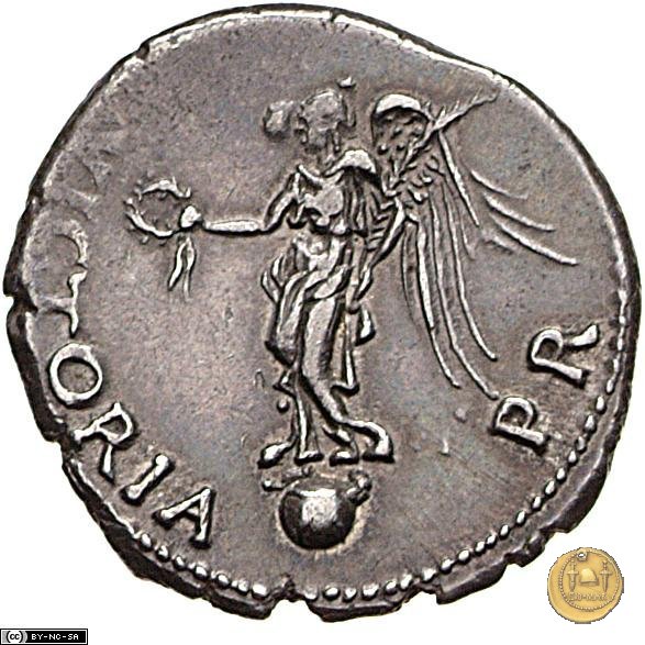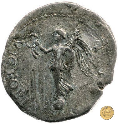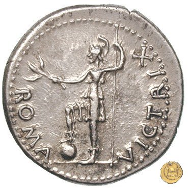 CLM80 Dritto: ![]() GALBA ![]() IMPERATORTesta di Galba, laureata, rivolta verso destra. Globo all'apice del busto. Verso: ![]() VICTORIA ![]() P RUna Vittoria, drappeggiata e con la testa rivolta verso sinistra, su di un globo. Nella mano destra una ghirlanda e nella sinistra una palma. | |