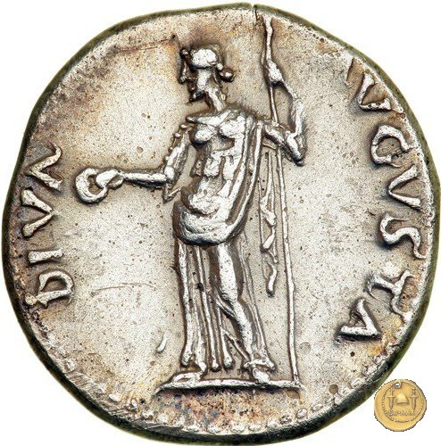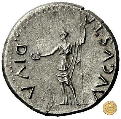 CLM83 Dritto: ![]() GALBA ![]() IMPTesta di Galba, laureata, rivolta verso destra. Globo all'apice del busto. Verso: ![]() DIVA ![]() AVGVSTALivia, drappeggiata e in piedi rivolta verso sinistra. Nella mano destra una patera, nella sinistra un lungo scettro. | |