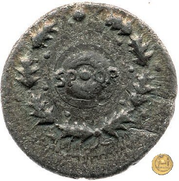 CLM110 Dritto: ![]() GALBA ![]() IMPERATORTesta di Galba, laureata, rivolta verso destra. Globo all'apice del busto. Verso: → S P - Q R La legenda in un piccolo scudo circolare circondato da una ghirlanda di quercia. | |