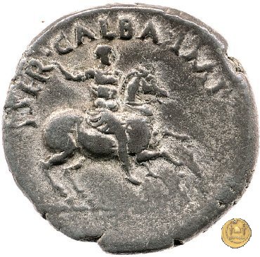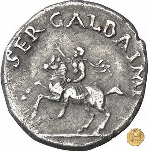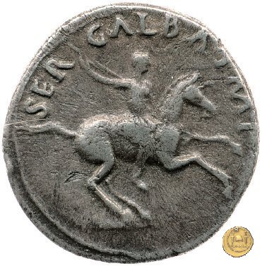 CLM130 Dritto: ↻ SER GALBA IMP Galba, in abbigliamento militare, che cavalca verso destra; nella mano destra, un giavellotto. Verso: ![]() VIRTVSBusto della Virtus, con elmo a cresta, drappeggiato e rivolto verso destra. |