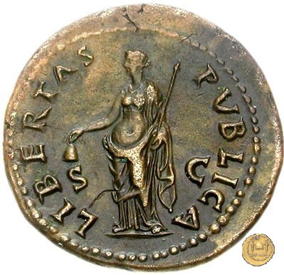 CLM422 Obverse: ↻ IMP SER GALBA - AVG TR P Busto di Galba, laureato, rivolto verso destra. Reverse: ![]() LIBERTAS ![]() PVBLICA; → S - CLa Libertas, drappeggiata, in piedi verso sinistra; nella mano destra un pileo, nella sinistra un bastone verticale. | |