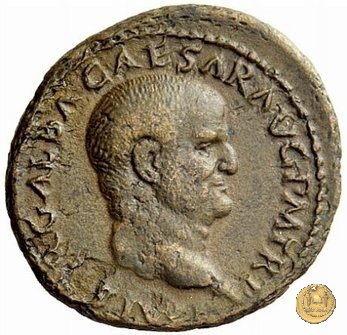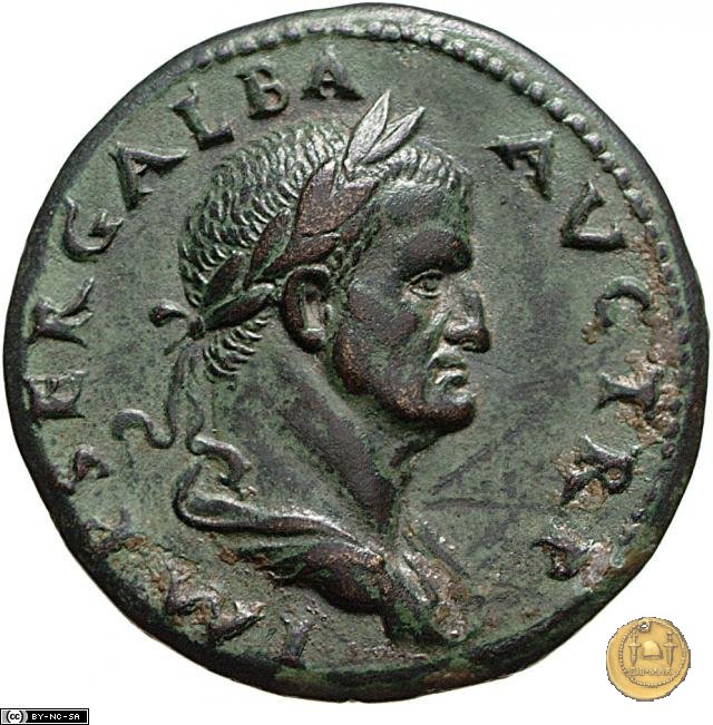 CLM445 Obverse: ↻ IMP SER SVLPIC - GALBA CAES AVG - TR P Busto di Galba, laureato e drappeggiato, rivolto verso sinistra. Reverse: ![]() PA - X ![]() AVGVSTA; → S - CLa Pax, drappeggiata, in piedi verso sinistra; nella mano destra un ramo, nella sinistra un caduceo. | |