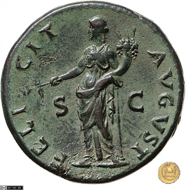 CLM449 Obverse: ↻ IMP SER GALBA CAES AVG TR P Busto di Galba, laureato, rivolto verso sinistra. Reverse: ![]() FELICITAS ![]() AVGVST; → S - CLa Felicitas, drappeggiata, in piedi verso sinistra; nella mano destra una patera, nella sinistra una cornucopia; il gomito sinistro poggia su di un cippo. | |