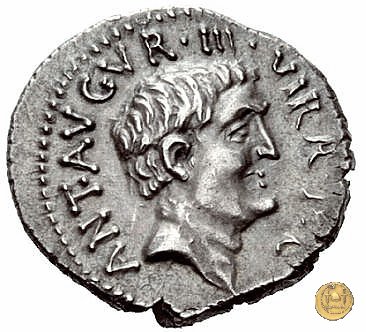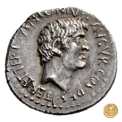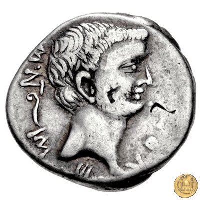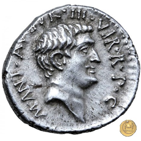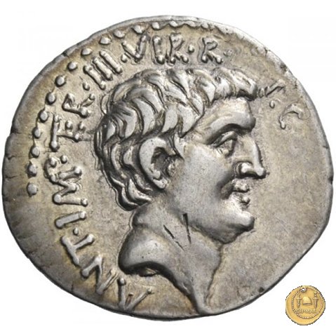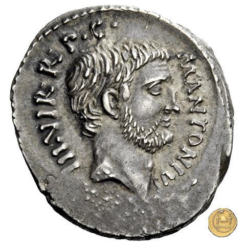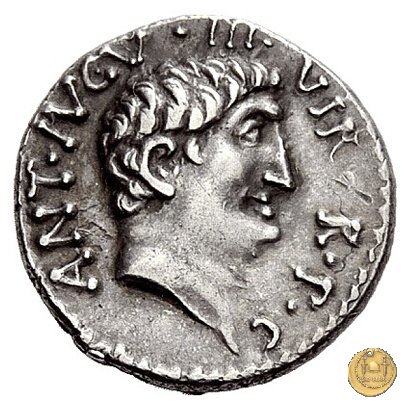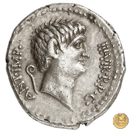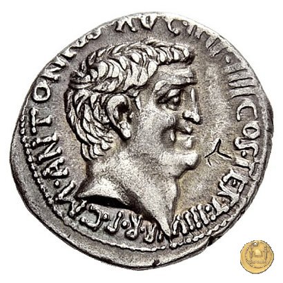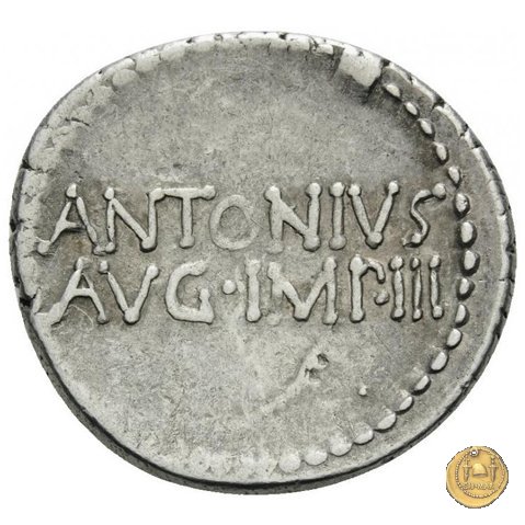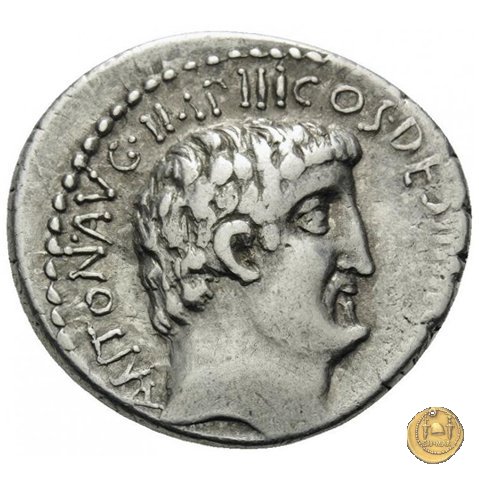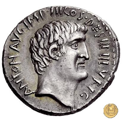 542/2 - denario M. Antonius Obverse: ANTON. AVG. IMP. III. COS. DES. III. III. V. R. P. C Testa di Marc'Antonio a destra. Reverse: ANTONIVS / AVG. IMP. III • | |