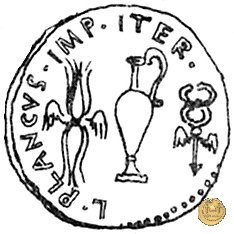 522/2 - denario M. Antonius / L. Munatius Plancus Obverse: M. ANTON. IMP. AVG. III. VIR. R. P. C Lituus e brocca. Reverse: L. PLANCVS. PRO. COS Fulmine alato, brocca e caduceo alato. | |