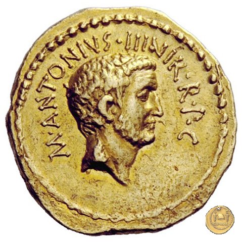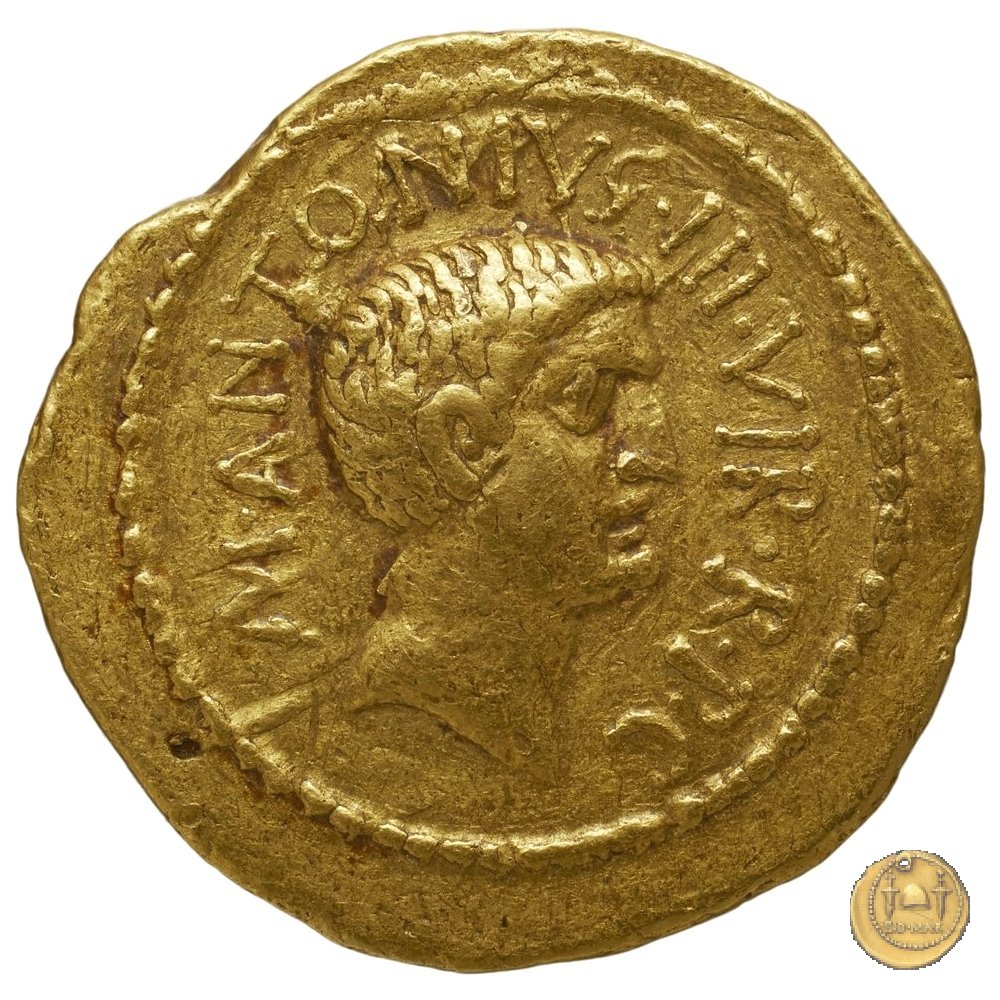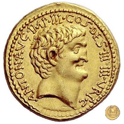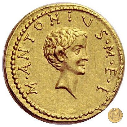 541/1 - aureo M. Antonius Obverse: M. ANTONI. M. F. M. N. AVG. IMP. TERT Testa di Marc'Antonio a destra. Reverse: COS. ITER. AESIGN. TERT. III. VIR. R. P. C Testa del figlio di Marc'Antonio a destra. | |