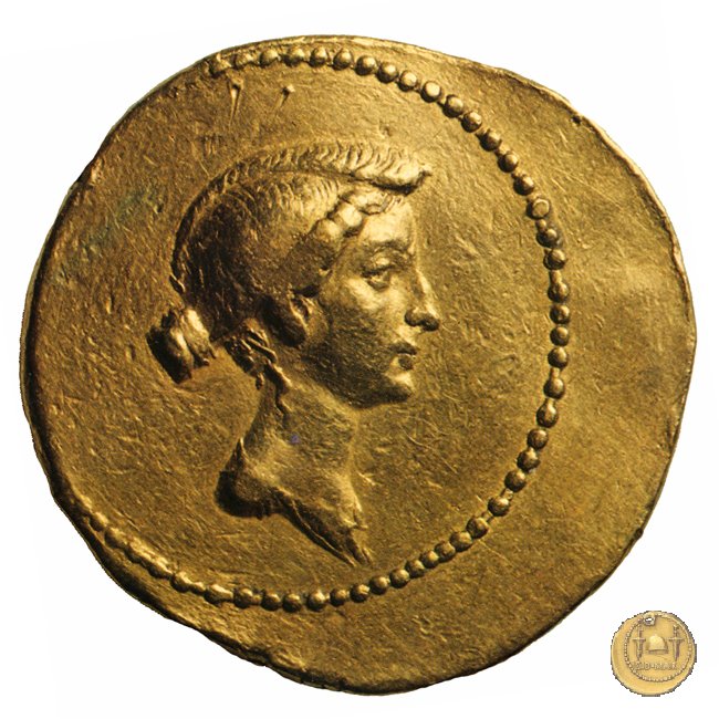 527/1 - aureo M. Antonius / Octavia Obverse: M. ANTONIVS. IMP. III. VIR. R. P. C Testa di Marc'Antonio a destra. Reverse: Testa di Ottavia a destra. | |