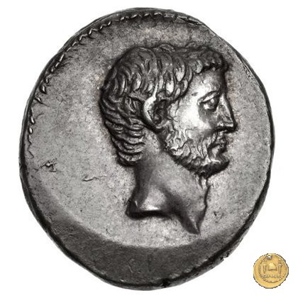 496/2 - denario M. Antonius Obverse: Testa barbata di Marc'Antonio a destra. Dietro il lituus. Reverse: M. ANTONIVS. III. VIR. R. P. C Testa radiata del Sole a destra. | |