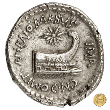 521/2 - denario M. Antonius / Cn. Domitius Ahenobarbus Obverse: ANT. IMP. III. VIR. R. P. C Testa di Marc'Antonio a destra. Dietro il lituus. Reverse: CN. DOMIT. AHENOBARBVS. IMP Prora di nave a destra. In alto una stella. | |