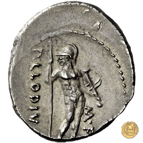 494/17 - denario M. Antonius / P. Clodius M.f. Obverse: M. ANTOVIVS - III. VIR. R. P. C Testa barbata di Marc'Antonio a destra. Reverse: P. CLODIVS - M. F Marte, in nudità eroica, stante frontale, con testa elmata volta a sinistra; tiene la lancia con la mano destra, il parazonium con la sinistra. | |