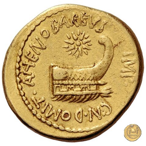 521/1 - aureo M. Antonius / Cn. Domitius Ahenobarbus Obverse: ANT. IMP. III. VIR. R. P. C Testa di Marc'Antonio a destra. Dietro il lituus. Reverse: CN. DOMIT. AHENOBARBVS. IMP Prora di nave a destra. In alto una stella. | |
