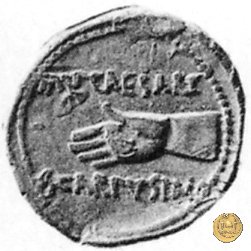 494/19 - denario C. Iulius Caesar Octavianus / P. Clodius M.f. Dritto: CAESAR - III. VIR. R. P. C Testa di Ottaviano a destra. Verso: P. CLODIVS - M. F La Pietà stante a sinistra; tiene un ramo con la mano destra, lo scettro con la sinistra. | |
