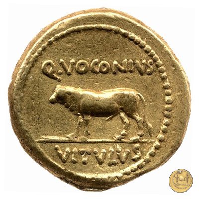 526/1 - aureo C. Iulius Caesar Octavianus / Q. Voconius Vitulus Dritto: DIVI - IVLI. F Testa di Ottaviano a destra. Verso: Q. VOCONIVS - VITVLVS Vitello a sinistra. | |
